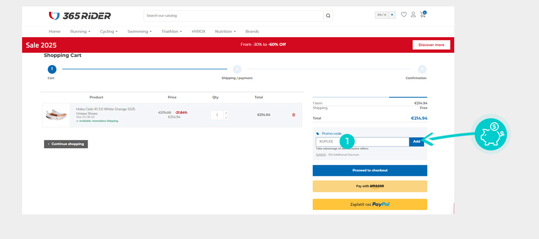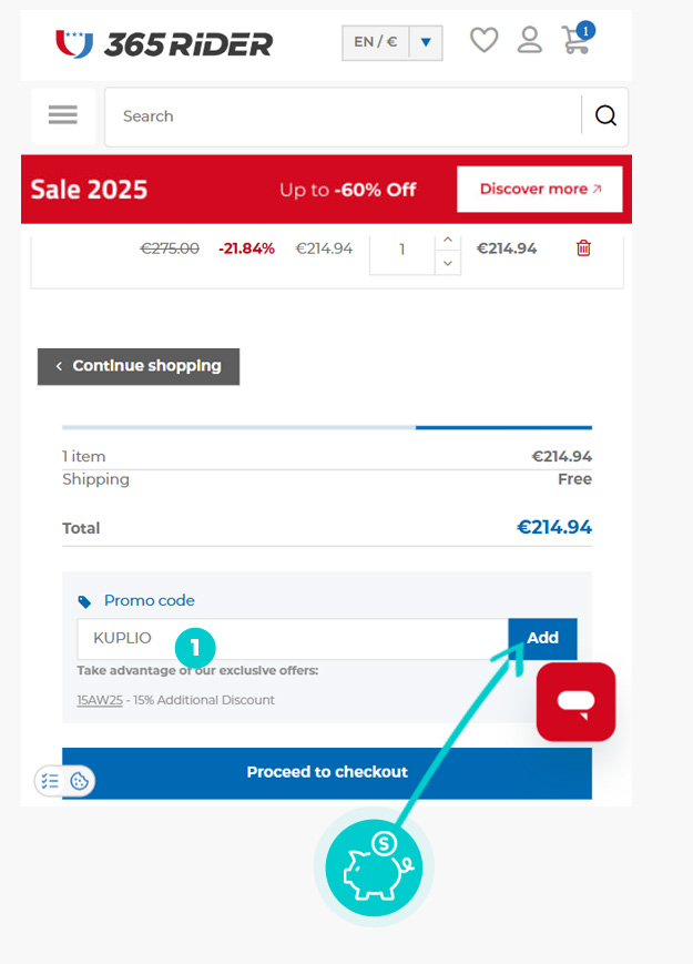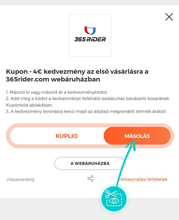 Másold ki vagy másold át a kuponkódot és kattints „A webáruházba” gombra. Ezt követően átirányítunk a 365rider.com webáruházba.