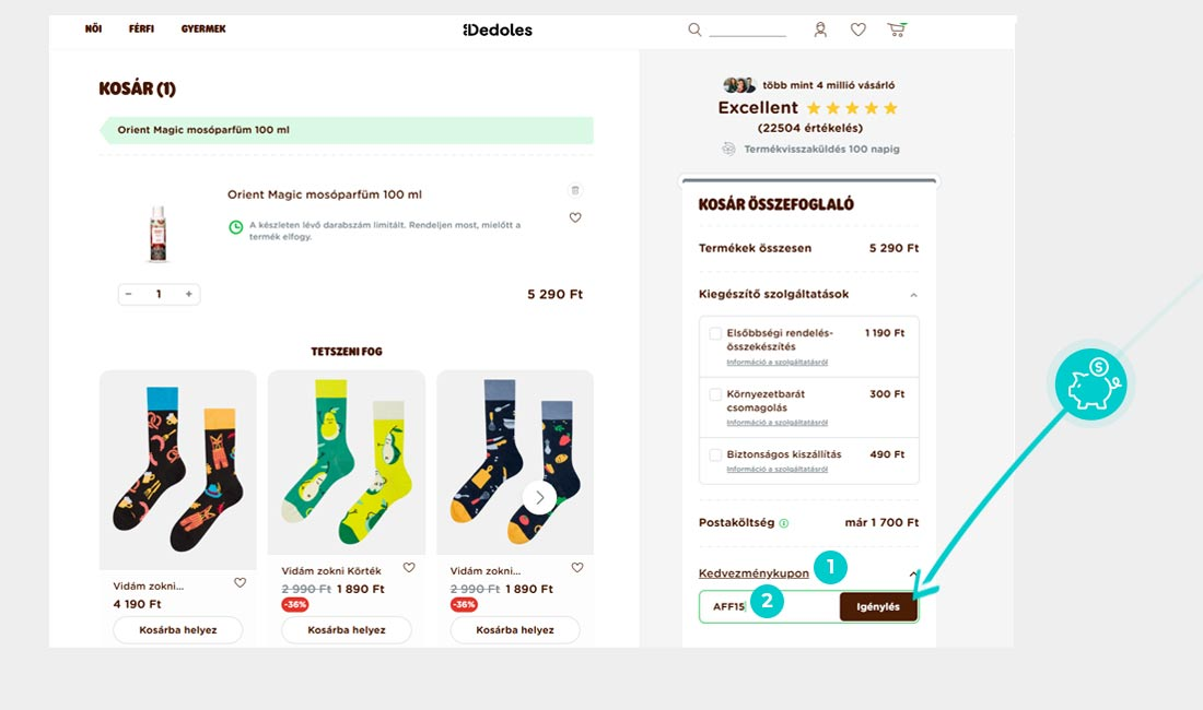 Válassz ki egyet a Dedoles kedvezmények közül és kattints a „Megnézem” gombra. Ezt követően átirányítunk a Dedoles webáruházba egyenesen a Dedoles.hu akciós kínálatához, ahol megvásárolhatod a terméket kedvezményesen.