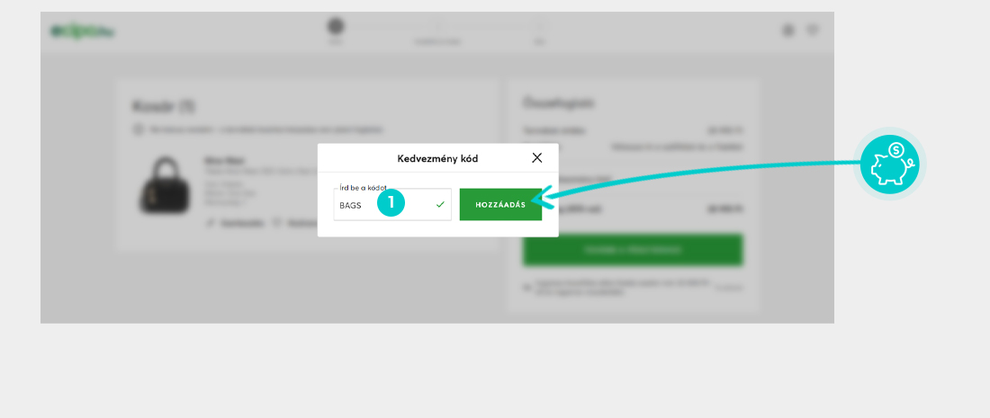 Válaszd ki a webáruházban a kívánt terméket, majd kattints a „Kosárba tesz” gombra és termék automatikusan a bevásárlókosárba kerül. A bevásárlókosárban a kiválasztott termékek alatt találod a "Vedd igénybe a kedvezményes kupont" ablakot. Itt megadhatod a kedvezménykódot a kód bemásolásával, vagy manuálisan beírva, majd érvényesítsd a „Kupon érvényesítése” gombbal.