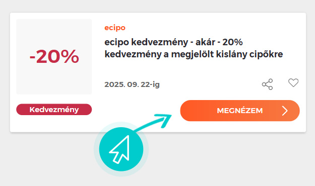 Válassz ki egyet a kedvezménykuponok közül és kattints a „Megnézem” gombra. Ezt követően átirányítunk az ecipo webáruházba egyenesen az ecipo akciós kínálatához, ahol megvásárolhatod a terméket kedvezményesen.