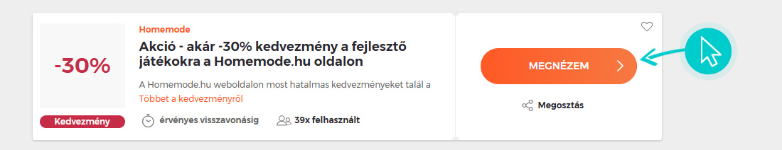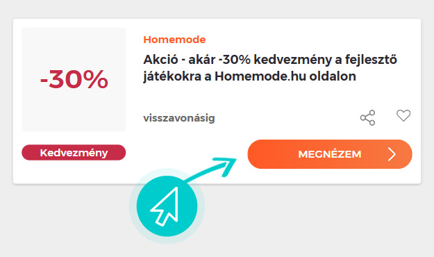 Válassz ki egyet a Homemode.hu kedvezmények közül és kattints a „Megnézem” gombra. Ezt követően átirányítunk a Homemode webáruházba egyenesen a Homemode.hu akciós kínálatához, ahol megvásárolhatod a terméket kedvezményesen.