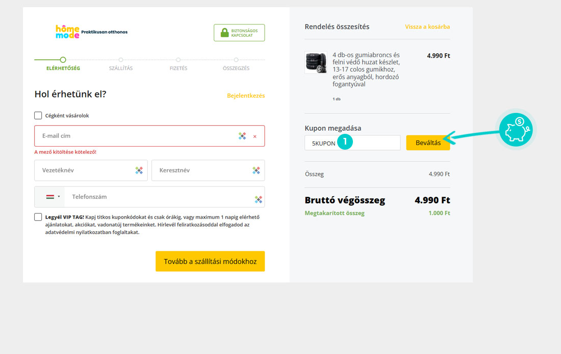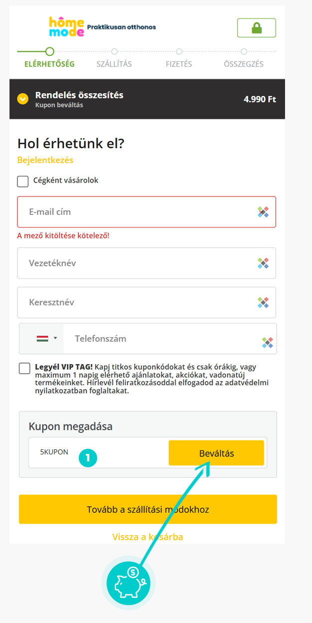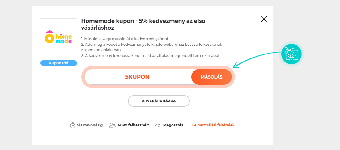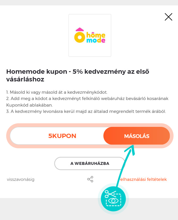 Kedvezmény mértéke: -50%Nem tudod pontosan hogyan működnek a Homemode.hu kuponkódok? Mi most megmutatjuk neked, hogyan tudod a kuponokat gyorsan és egyszerűen felhasználni: