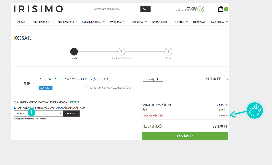 Másold ki vagy másold át a kódot és kattints a „Tovább a webáruházba” gombra. Ezt követően átirányítunk az Irisimo.com webáruházba.