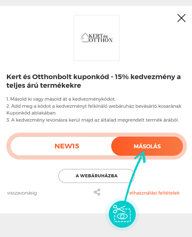 Másold ki vagy másold át a kódot és kattints a „Tovább a webáruházba” gombra. Ezt követően átirányítunk a Kertesotthonbolt.hu webáruházba.