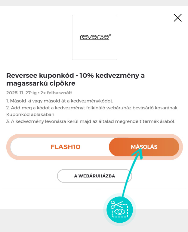 Másold ki vagy másold át a kódot és kattints „A webáruházba” gombra. Ezt követően átirányítunk a Reversee.hu webáruházba.