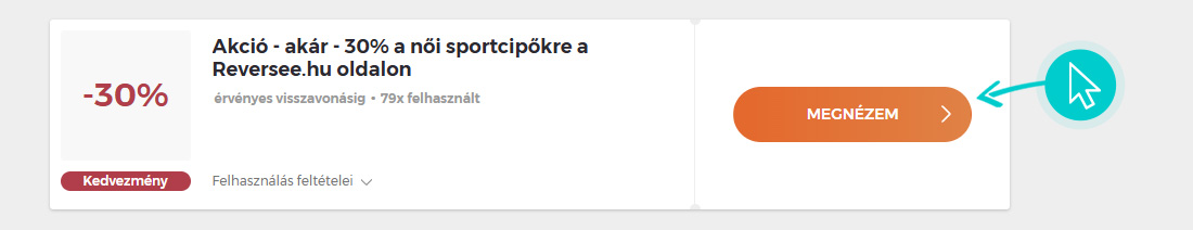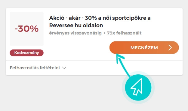 Válassz ki egyet a Reversee kedvezmények közül és kattints a „Megnézem” gombra. Ezt követően átirányítunk a Reversee webáruházba egyenesen a Reversee.hu akciós kínálatához, ahol megvásárolhatod a terméket kedvezményesen.