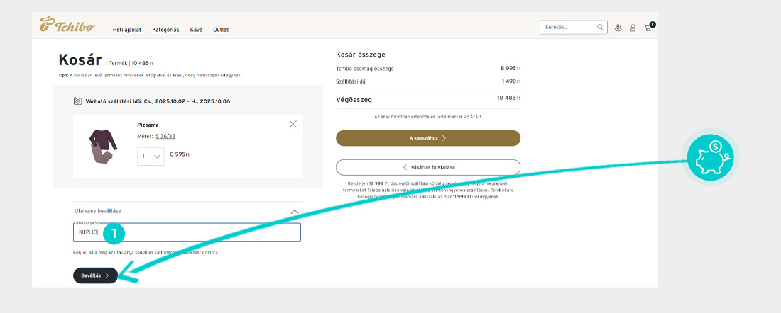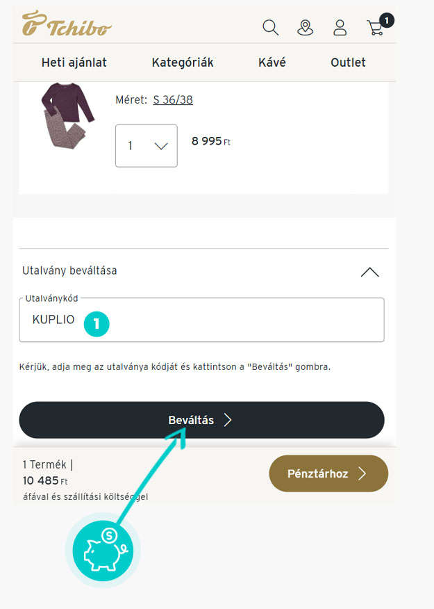 Másold ki vagy másold át a kódot és kattints „A webáruházba” gombra. Ezt követően átirányítunk a Tchibo.hu webáruházba.