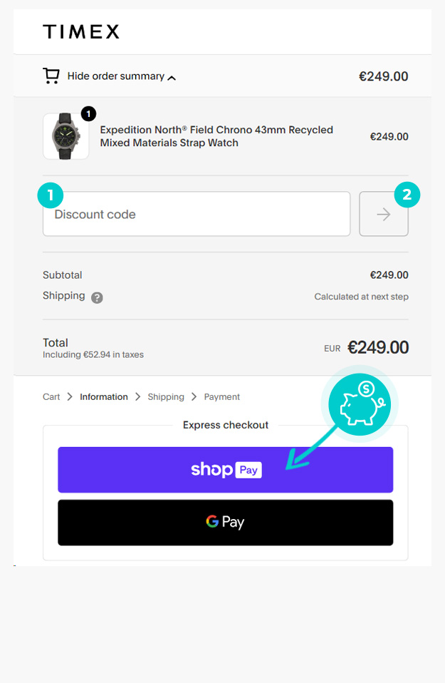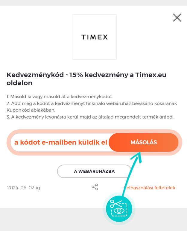 Másold ki vagy másold át a kódot és kattints „A webáruházba” gombra. Ezt követően átirányítunk a Timex.eu webáruházba.