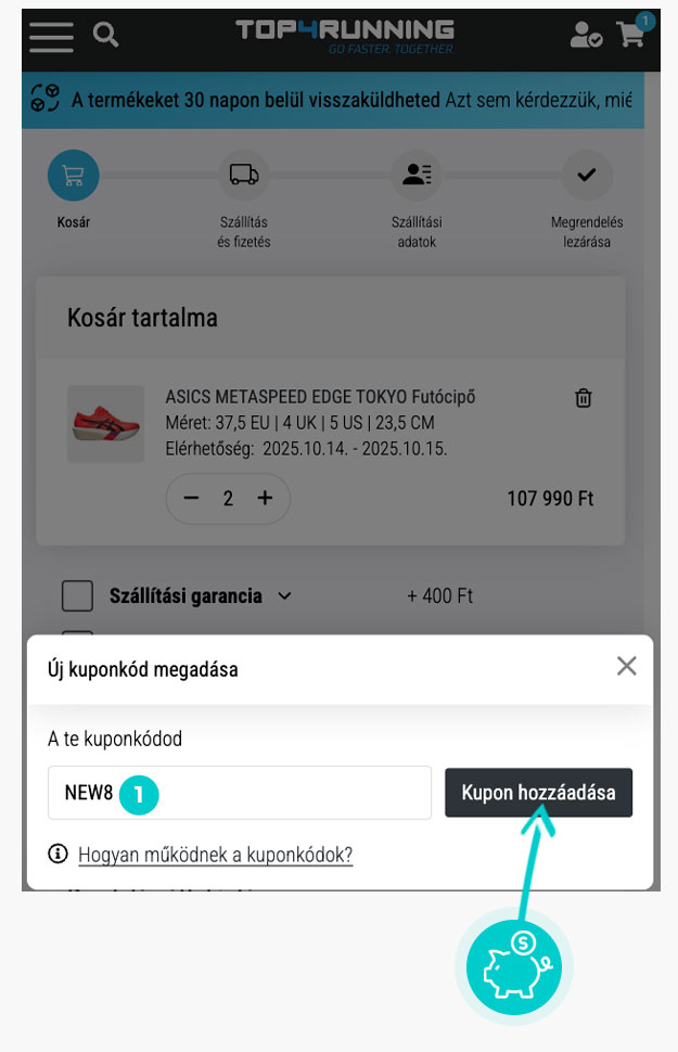 Nem tudod pontosan hogyan működnek a Top4running kuponkódok? Mi most megmutatjuk neked, hogyan tudod a kuponokat gyorsan és egyszerűen felhasználni: