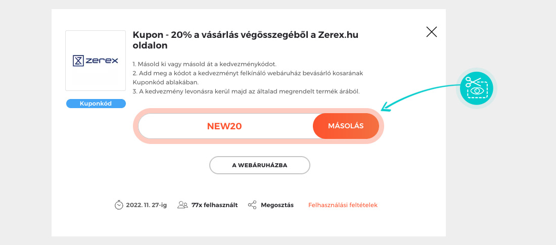 Másold ki vagy másold át a kódot és kattints „A webáruházba” gombra. Ezt követően átirányítunk az Izerex.hu webáruházba.